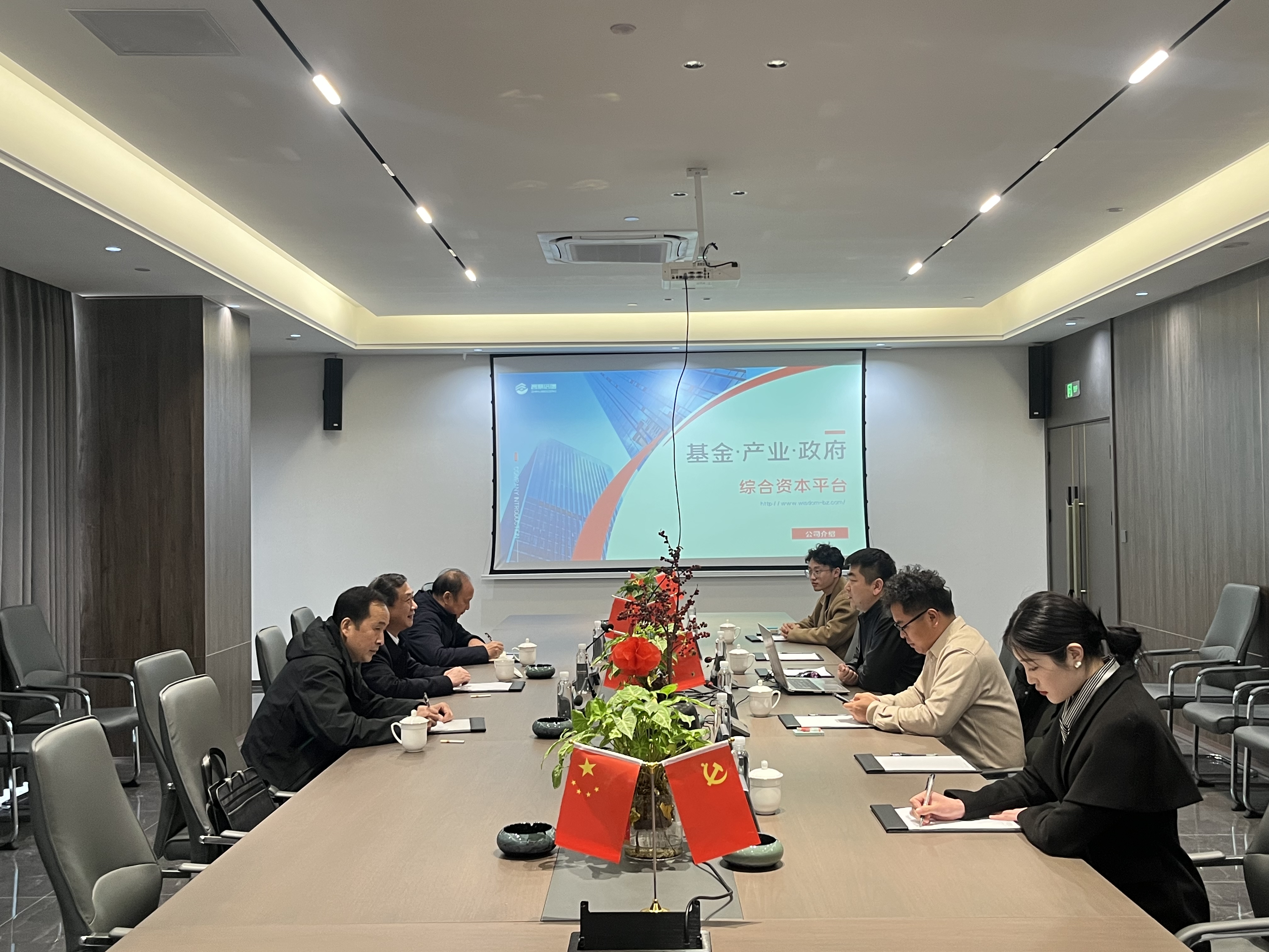 在座談中,智慧倍增集團總經理王建平詳細介紹了智慧倍增集團的基金規模、合作伙伴以及已成功助力落地的企業案例。程主任對智慧倍增集團的專業能力表示高度認可,并強調在合作過程中,要嚴格把關,確保引進的項目符合金寨縣的發展需求。他表示,金寨縣對智慧倍增集團精準推介的項目非常放心,并期待與之建立長期穩定的合作關系。